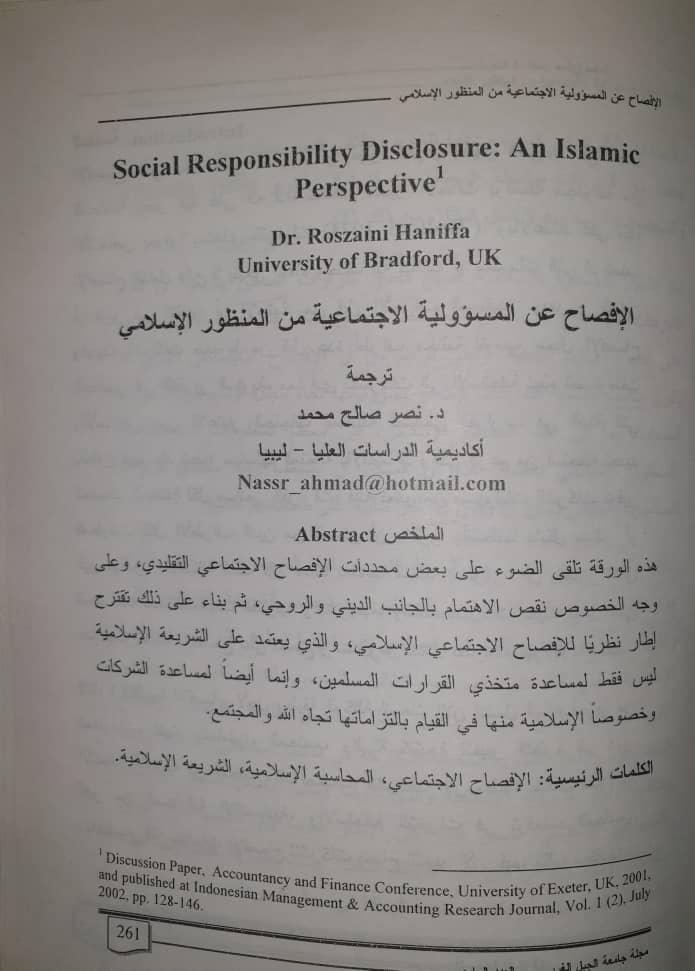- الإفصاح عن المسئولية الاجتماعية من المنظور الإسلامي